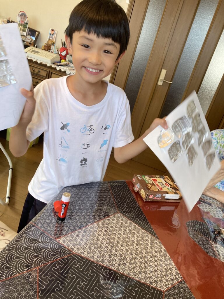 今日で長かった夏休みが終わりです。昨日はそろばん2時間、体操教室も2時間と頑張りました。今日は朝からコスモピアで買っておいた化学実験玩具を使って化学実験をしました。10時前に平和堂のイベントに行き、午後は図書館に行って、雨に降られ大変でした。その後、晴れたのでバッタ取りへ!今日は色々とイベント盛りだくさんでした。