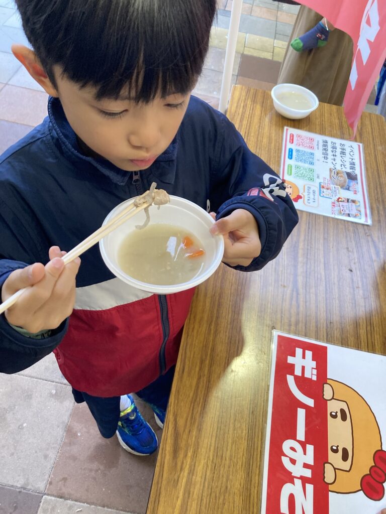 朝から雨が降っていましたが、体操教室とそろばんへ行ってきました。帰りに図書館へ行き、借りていた本を返却しました。午後はエイスクエアに仮面ライダーが来たので、会いに行きました。寒かったので、終わってから豚汁を美味しく頂きました。