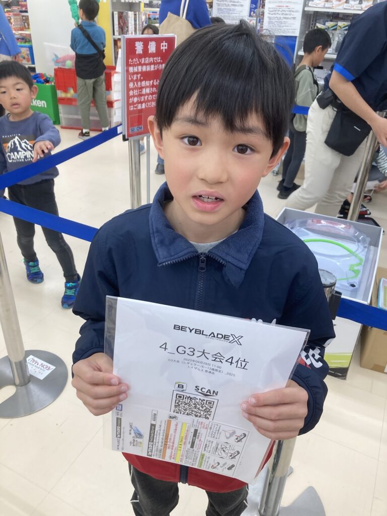 今日は抽選に当たりエントリー出来ました。毎日練習はしていたものの、相手がある事なので、どこまで勝てるかは未知数でしたが、ベスト16、ベスト8と順調に勝ち進みました。ベスト4で優勝した子と当たり初めて負けました。あんな悔しそうな表情は初めて見ました。遊びとはいえ、勝敗の決まる事なので、良い経験だと思いました。結果は4位決定戦でも負けてしまい、総合4位でした。