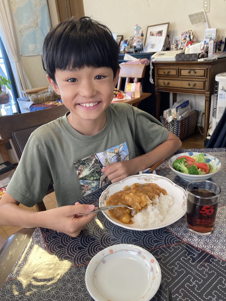 午後から大分の自転車屋さんへお土産を持って行きました。帰宅したら虫取りと庭の片付けのお手伝いをしました。