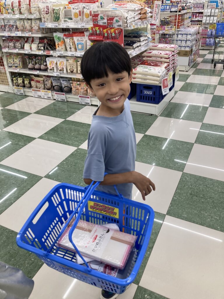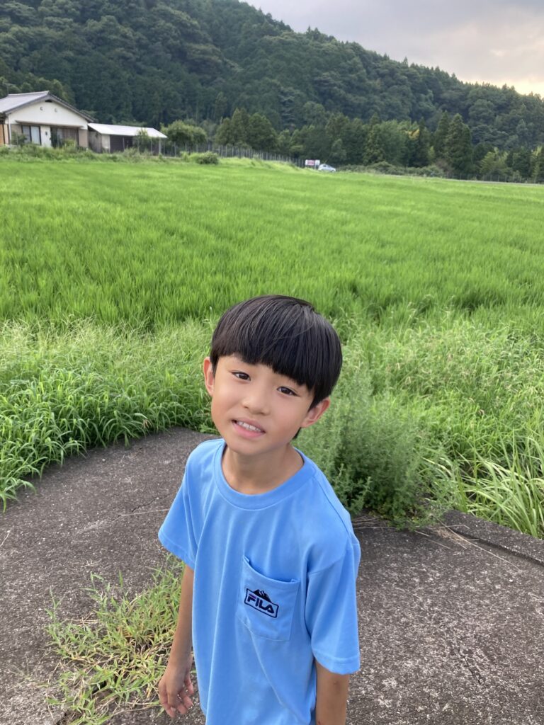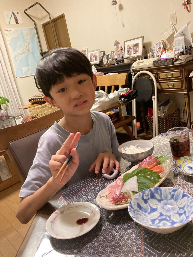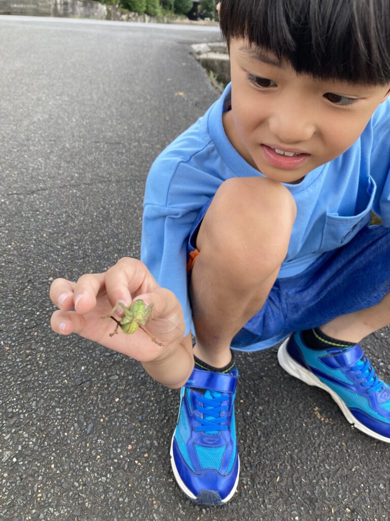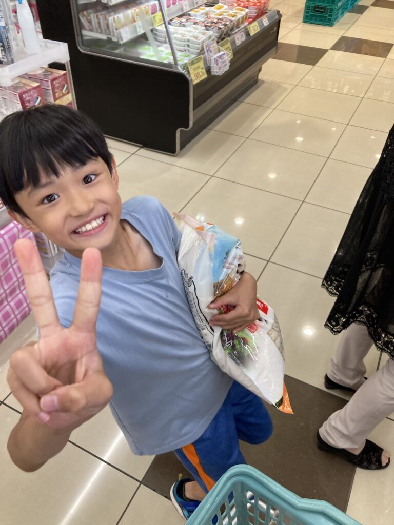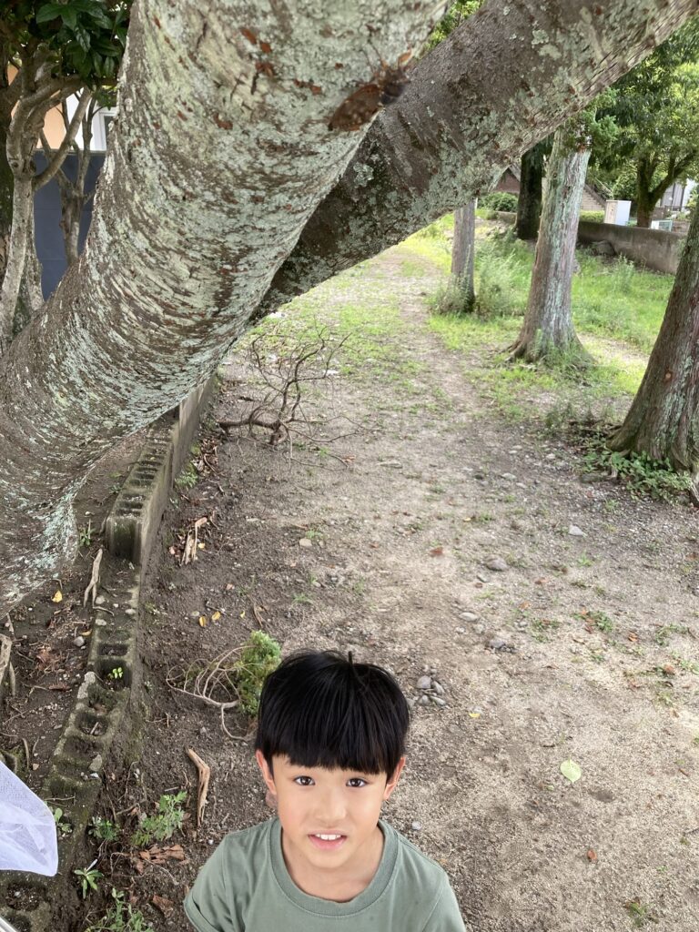 午後から大分の自転車屋さんへお土産を持って行きました。帰宅したら虫取りと庭の片付けのお手伝いをしました。