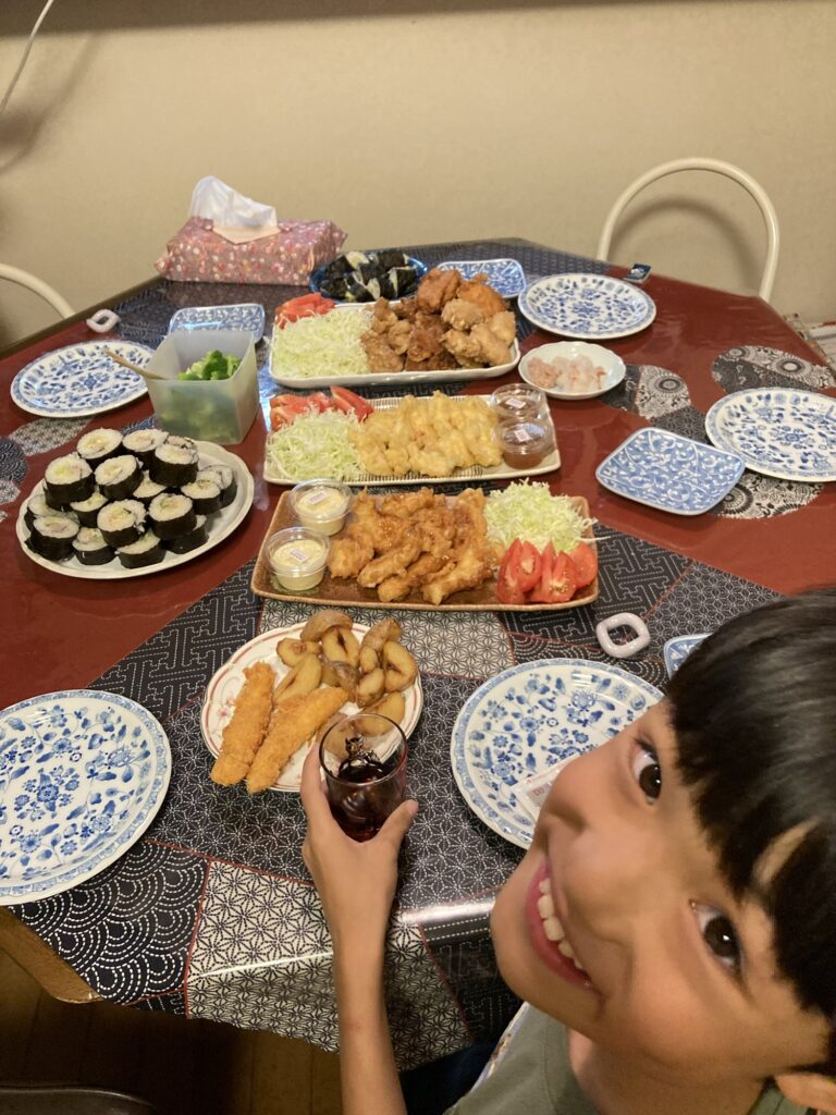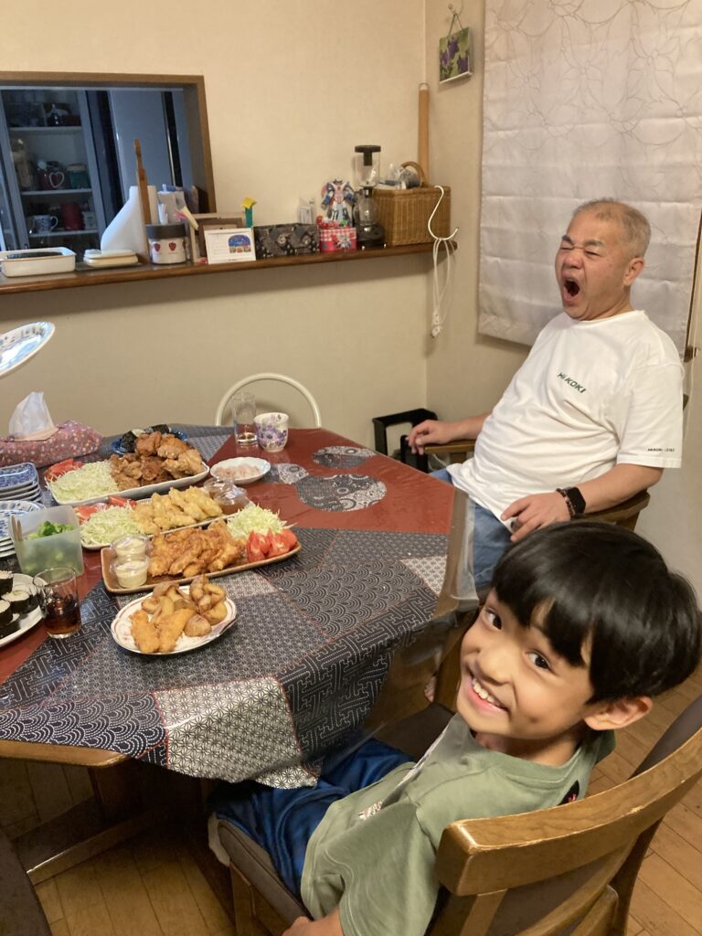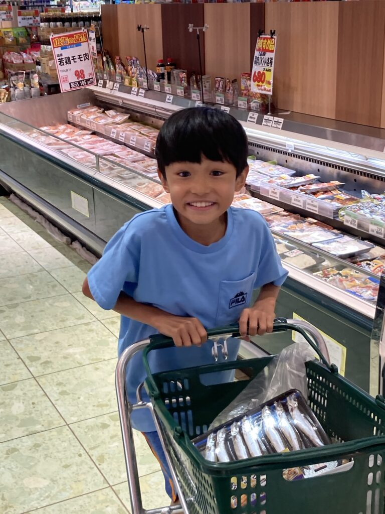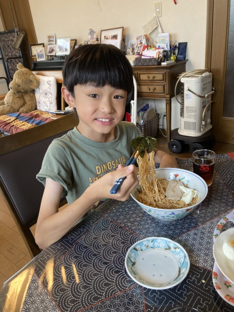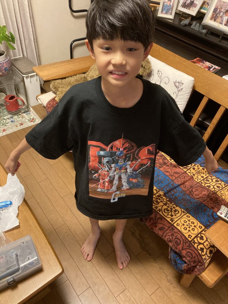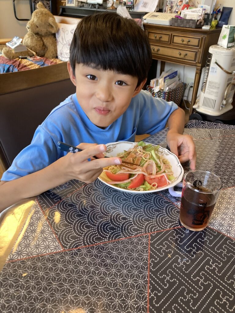 午後から大分の自転車屋さんへお土産を持って行きました。帰宅したら虫取りと庭の片付けのお手伝いをしました。