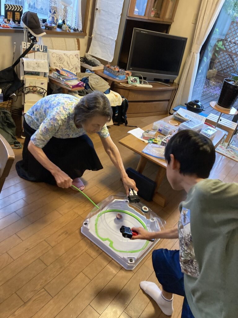 夕方におじちゃん夫婦が来られました。ベイバトルをしたり色々と遊んでくれました。